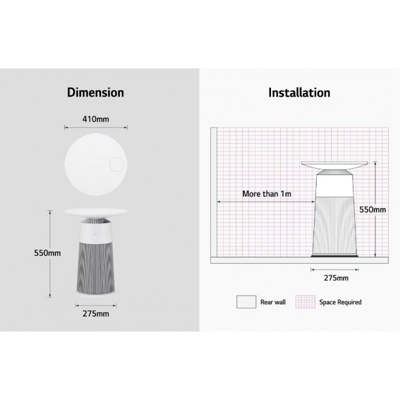 LG AeroFurniture 不僅是一部高效能的空氣清新機,更是一張時尚的茶几。其簡約優雅的設計,可作為床頭櫃或客廳邊桌,為您的家居增添品味,同時節省空間。桌面由再生塑膠製成,為環保出一分力。