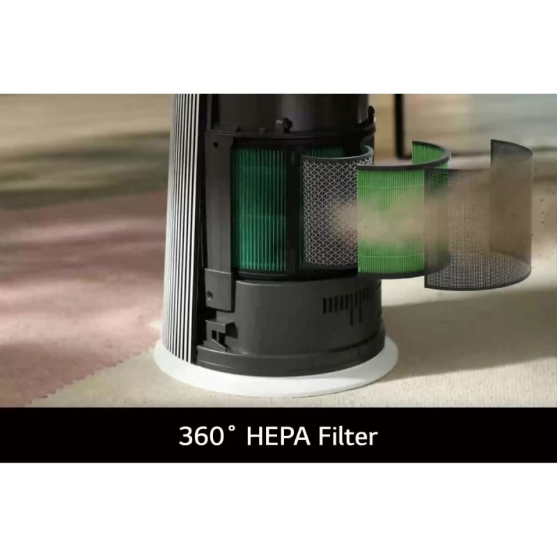 • 360° 全方位淨化: 從任何角度都能吸入並過濾污染物,確保室內空氣清新。