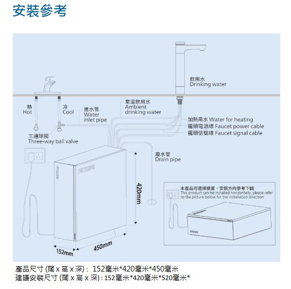 - 安裝方式:櫥下式 (可直向或橫向安裝)