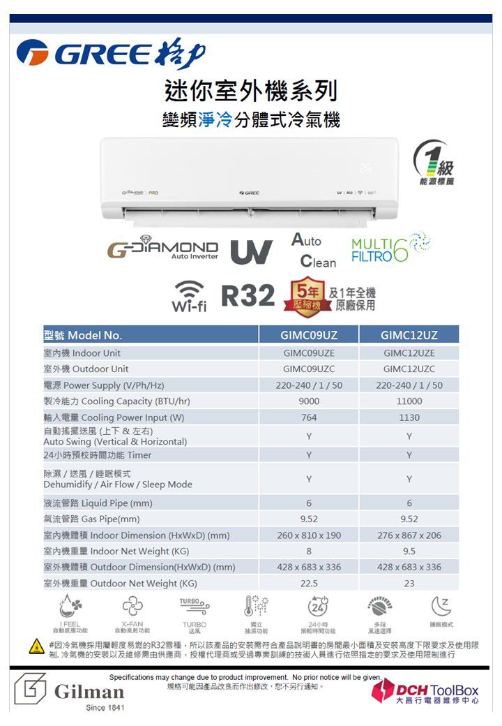 GREE 格力 GIMC12UZ 1.5匹 變頻迷你室外機系列 變頻淨冷分體式冷氣機評價
