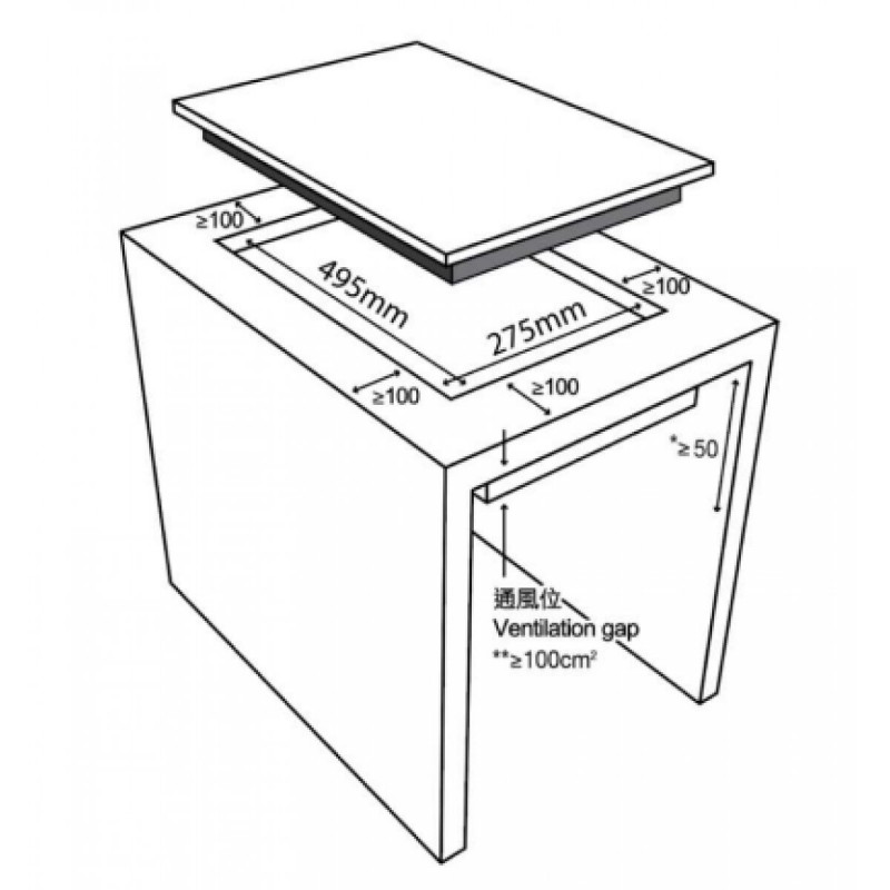 開孔:W275 x D495 mm | 保養期: 2年