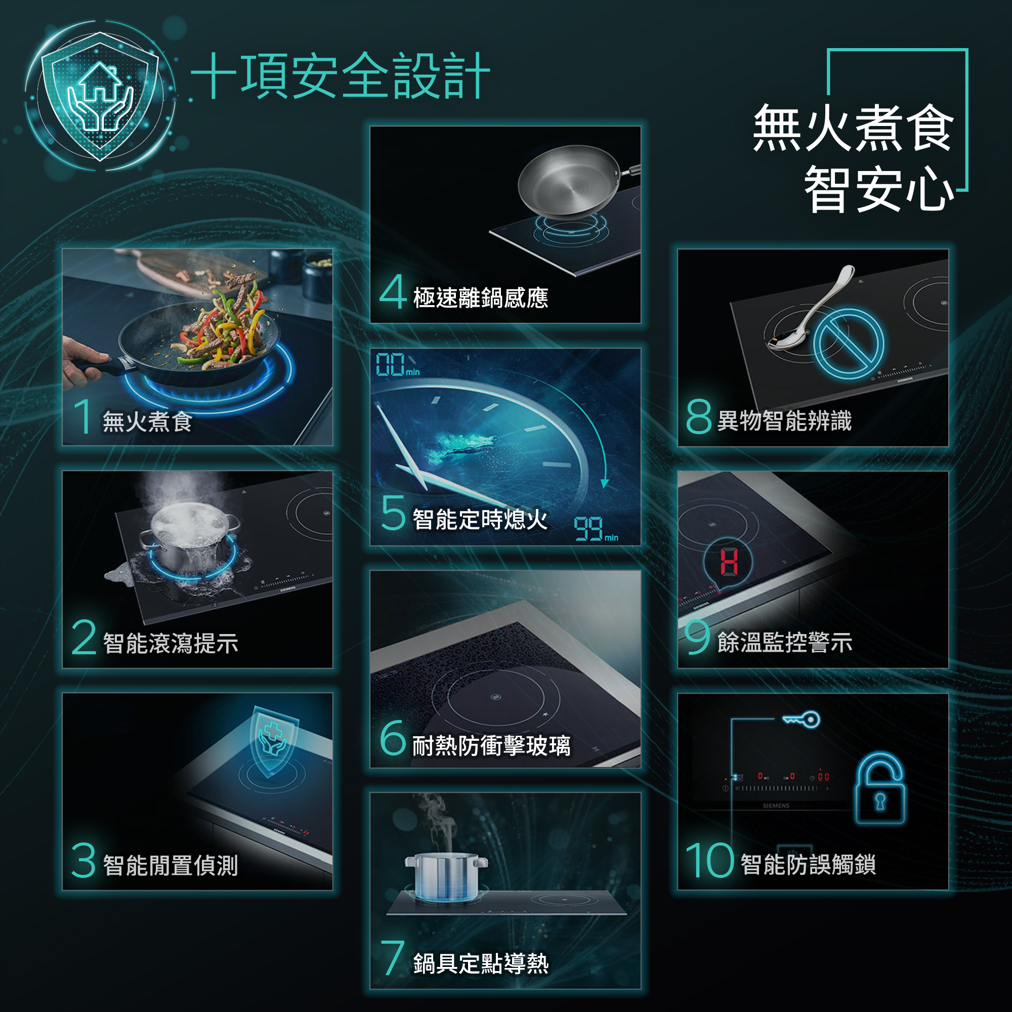 - 安全設計:具備兒童安全鎖及 2 段餘溫顯示功能,有效防止意外並提醒面板餘溫。