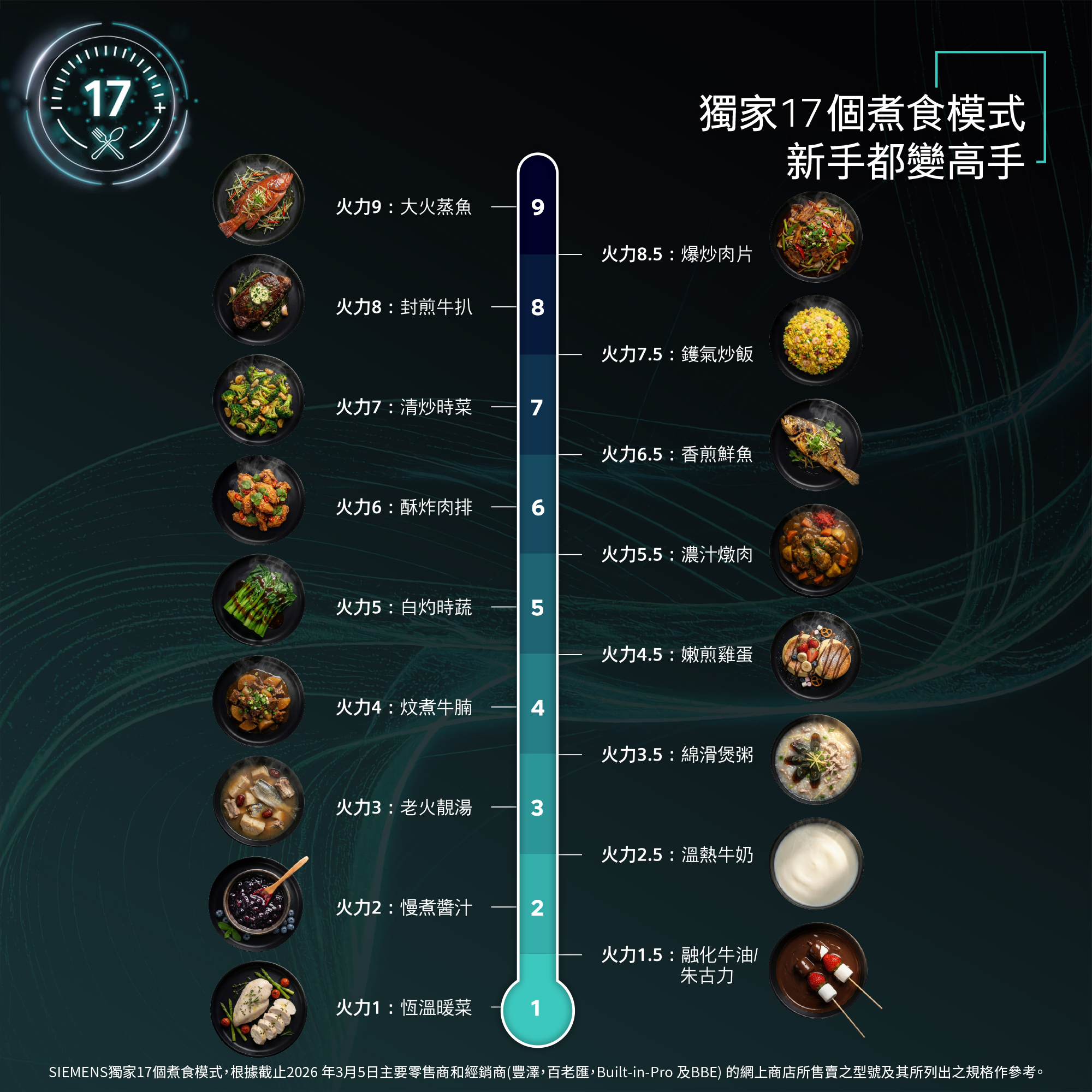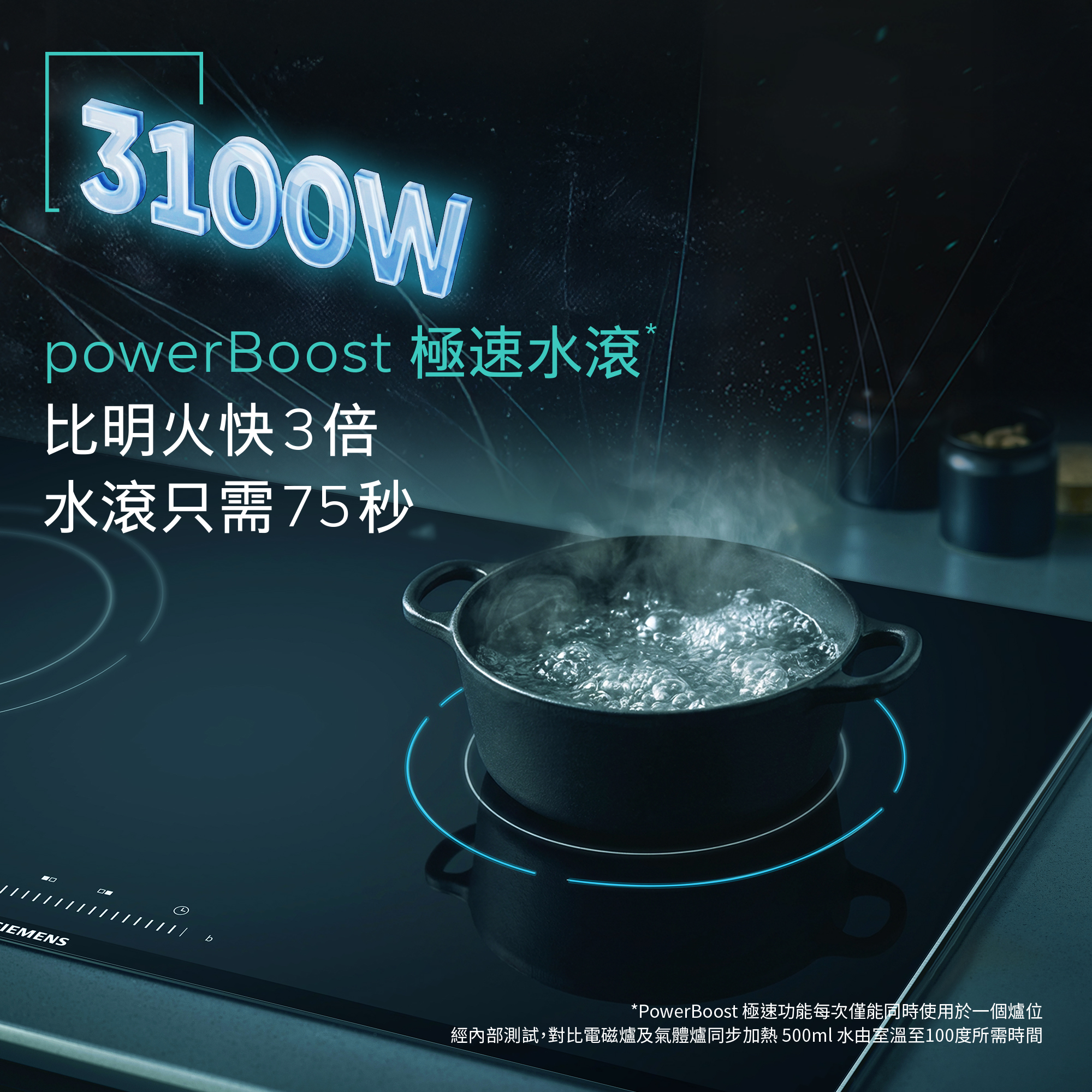 - powerBoost 火力加強功能:可大幅縮短加熱時間,適合中西式快速烹調。