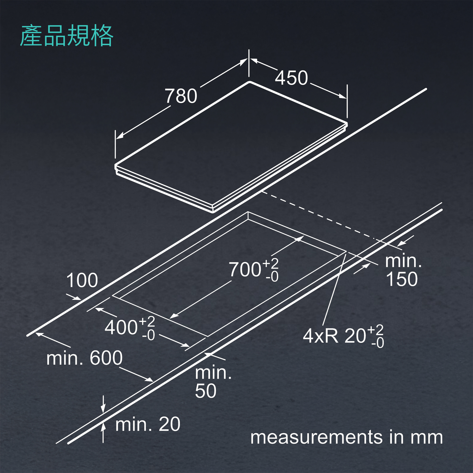 - 開孔尺寸(寬 x 深):700 x 400 毫米