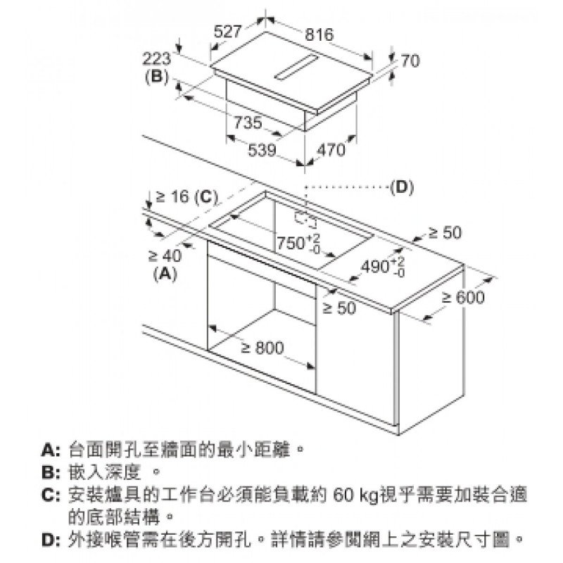 • 產品尺寸 (高x闊x深):223 x 816 x 527 毫米