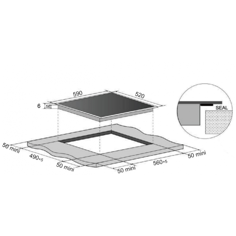 開孔:W560 x D490 mm | 保養期: 2年