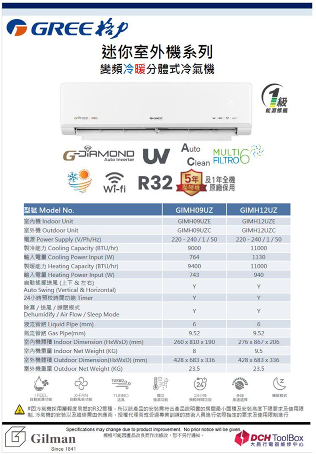 GREE 格力 GIMH12UZ 1.5匹 迷你室外機系列 變頻冷暖分體式冷氣機評價