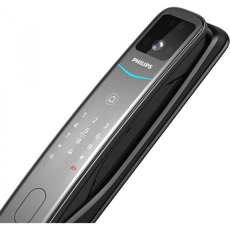 PHILIPS 飛利浦 DDL702-MVP 7000 series 手掌靜脈智能門鎖是一款融合尖端科技與卓越安全性的智能家居設備。這款曜石黑的推拉式門鎖採用堅固的鋁合金材質,配備先進的非接觸式手掌靜脈識別技術、半導體指紋感應器及4吋LCD顯示屏,提供多元化的便捷開鎖方式。DDL702-MVP 不僅提供實時監控、雙向視像對講功能,更配備雷達動態偵測及多重警報系統,為您的居家安全帶來全面升級,操作簡便,性能穩定可靠。
