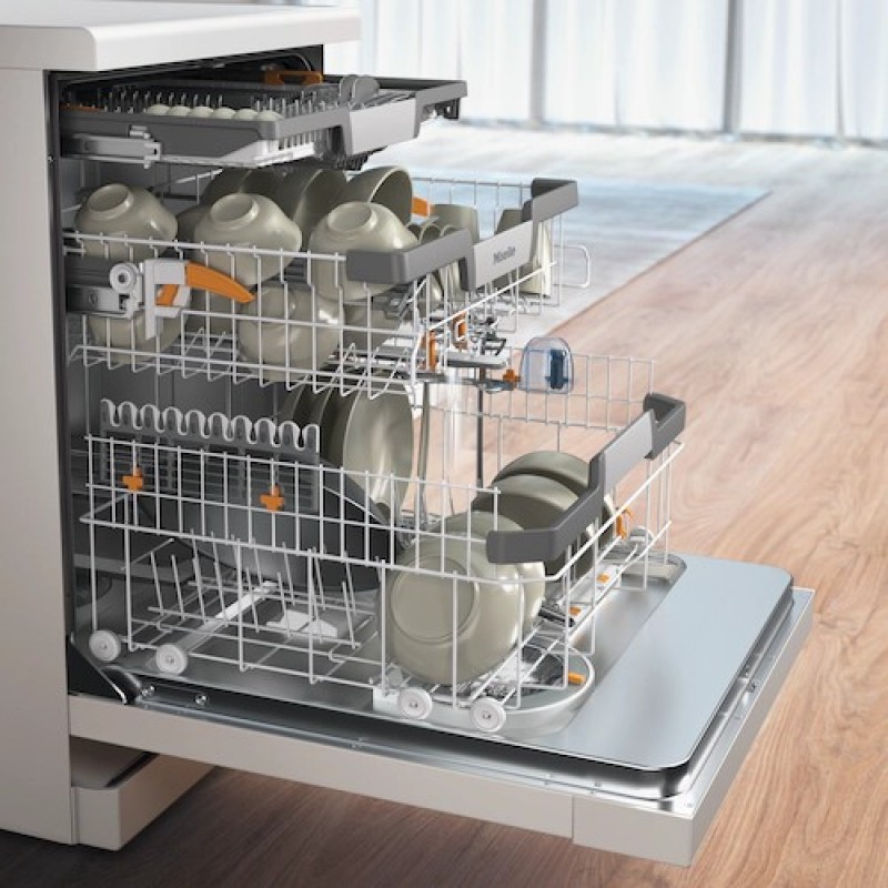 MIELE G 7130 C SC AutoDos 獨立式洗碗碟機是一款為現代家居設計的高效能電器,型號為 G 7130 C SC AutoDos。此款洗碗碟機提供超大 16 套餐具的清洗容量,配備獨特的 AutoDos 智能自動投放系統和 EcoPower 節能技術,尺寸為寬 598 x 高 850 x 深 600 毫米。它不僅能有效節省用水和能源,更能確保您的餐具獲得徹底而溫和的清洗,帶來極致的便利與潔淨體驗。