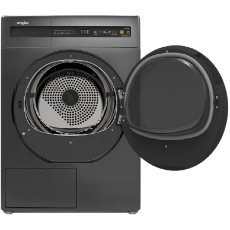 WHIRLPOOL 惠而浦 HWEC8002GG 是一款容量達 8公斤的熱泵式乾衣機,採用高效節能的熱泵烘乾技術,額定功率僅為 650W,能以較低耗電量實現優異的乾衣效果。此型號採用火山灰色機身配鍍鉻黑門設計,外觀現代簡約,並配備堅固耐用的不鏽鋼滾筒及直觀的 LED 觸控面板。透過惠而浦獨有的第六感智能科技(6th Sense),HWEC8002GG 能精確感應衣物濕度並自動調整烘乾時間,有效保護衣物纖維,避免因過度烘乾導致的收縮,是追求極致衣物護理與效能家庭的理想選擇。