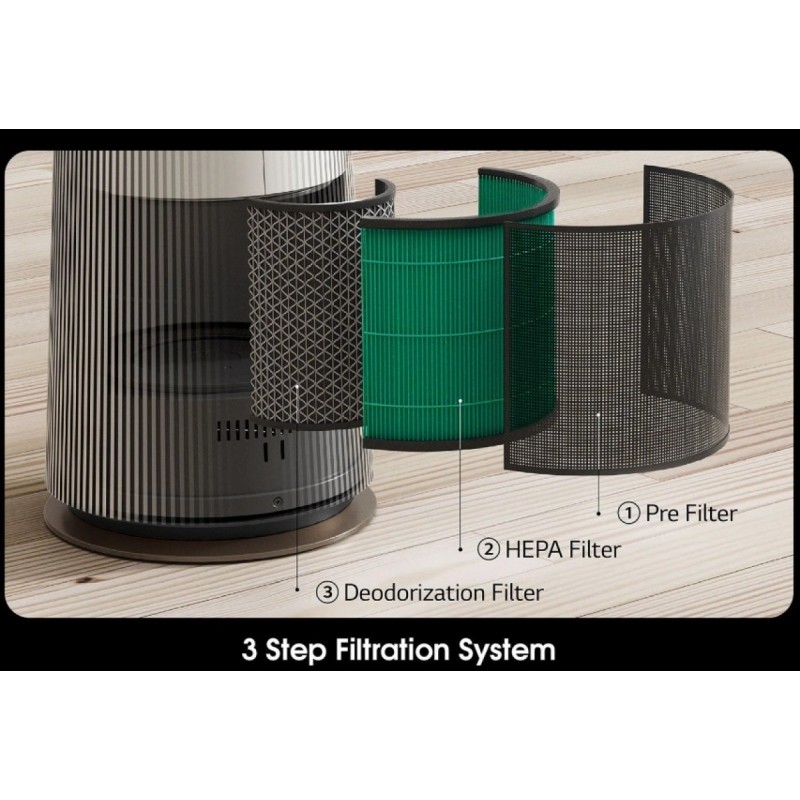 - 強效空氣淨化:配備三重過濾系統,包括前置濾網、HEPA H13濾網及活性碳濾網,有效過濾PM2.5、PM1.0懸浮粒子、塵埃、過敏原及異味,確保空氣清新潔淨。