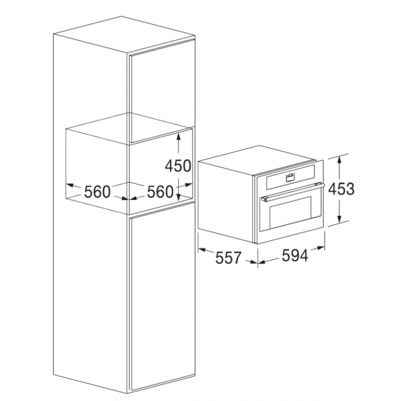 - 內建開孔尺寸:高 560 mm x 闊 450 mm x 深 560 mm。