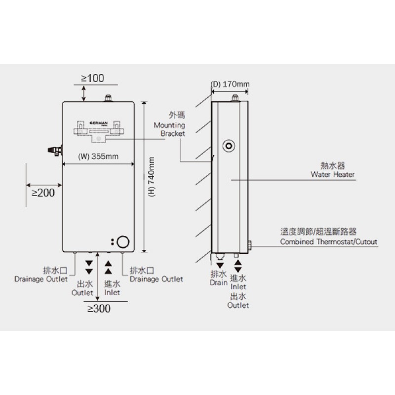 *即熱式電熱水爐標準安裝規格 安裝規格只供參考,以代理為準 |