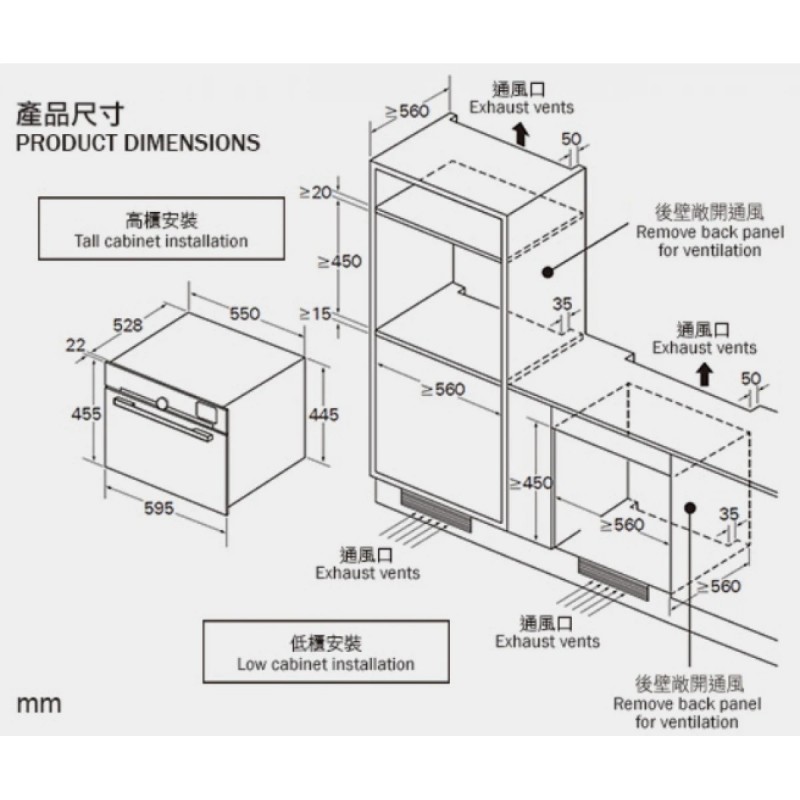 • 尺寸 (高 x 闊 x 深):455 x 595 x 550 mm