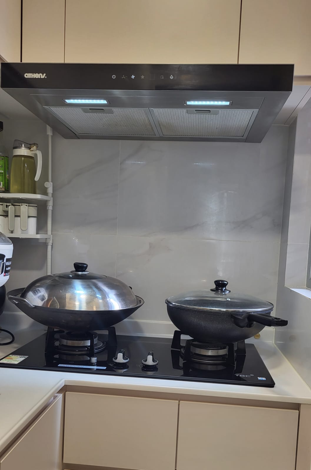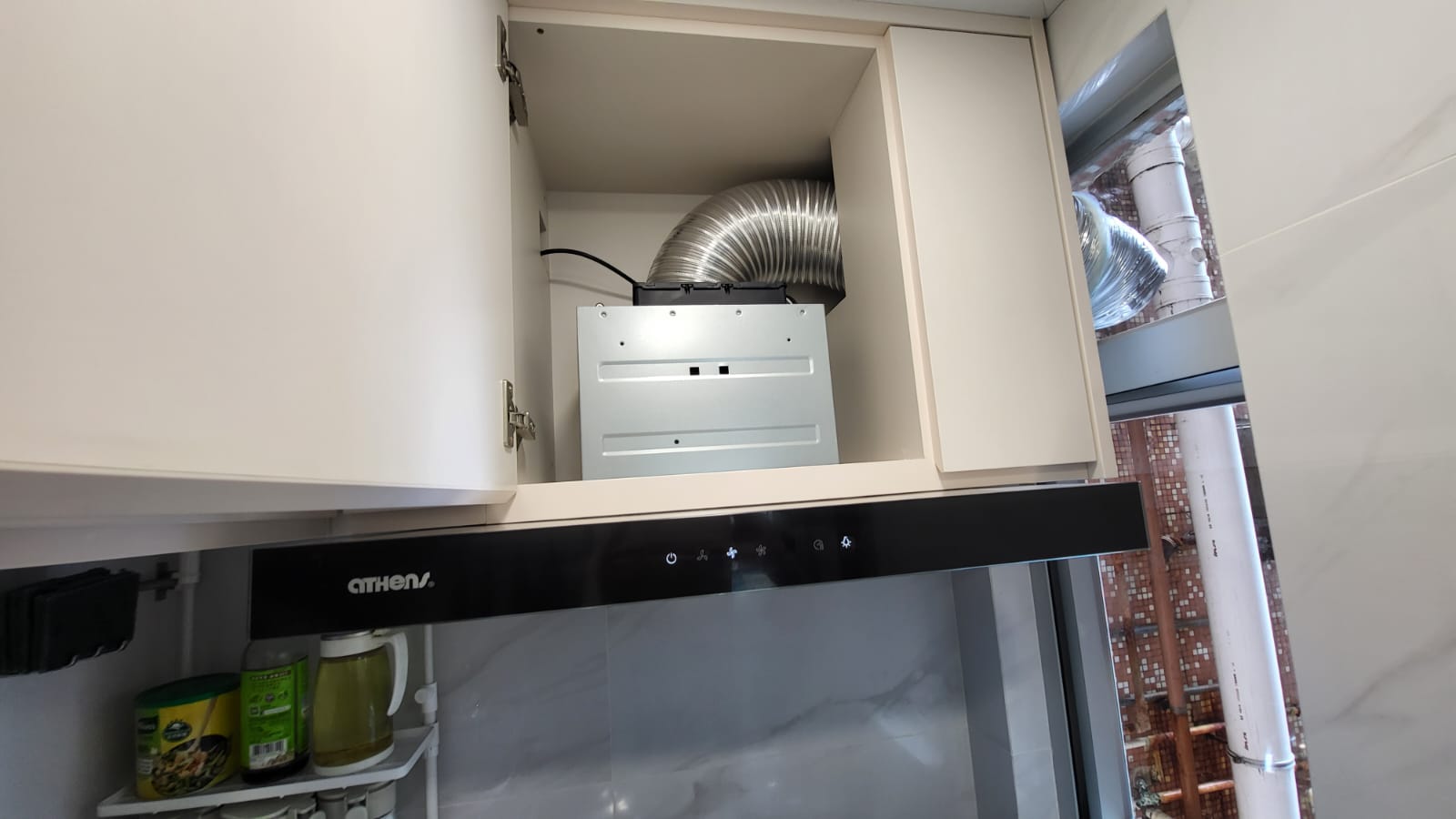 | 抽油煙機標準安裝規格 a. 包鋁喉8呎(5或6吋) b. 開玻璃孔一個(安全情況下) 不包開木孔 不包修改煙囪 不包拆間格板 抽油煙機安裝工程注意事項: 需預留足夠空間開玻璃孔,否則不會提供此服務,如廚櫃貼近玻璃開孔位置,建議裝廚櫃前先自行安排開玻璃孔 請確保安裝位置必須有足夠安全距離,否則不能提供安裝服務 一般抽油煙機底與電爐面/氣體爐架相距最少約700mm/28吋 (或跟代理安裝指引) |