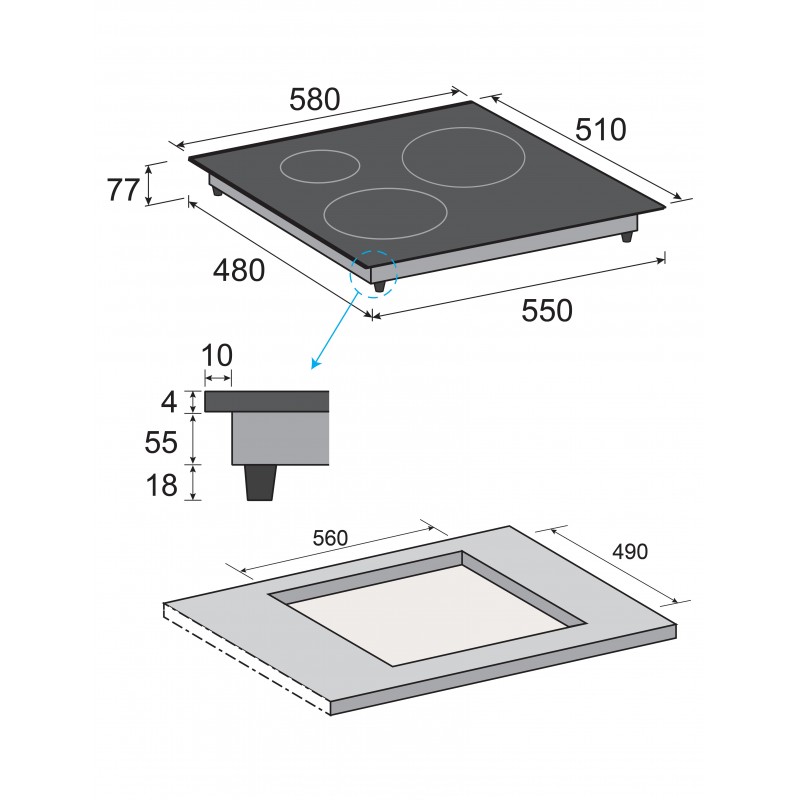 - 開孔尺寸 (闊x深):560 x 490 (mm)