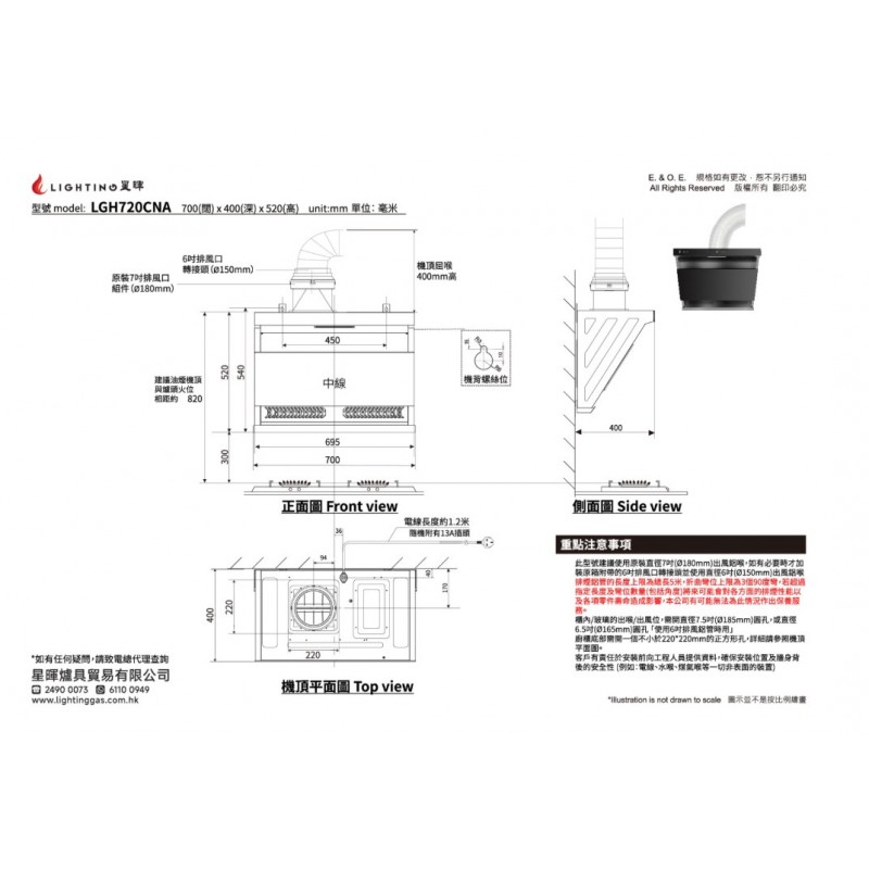 LIGHTING 星暉 LGH720CNA 70CM 斜面抽油煙機