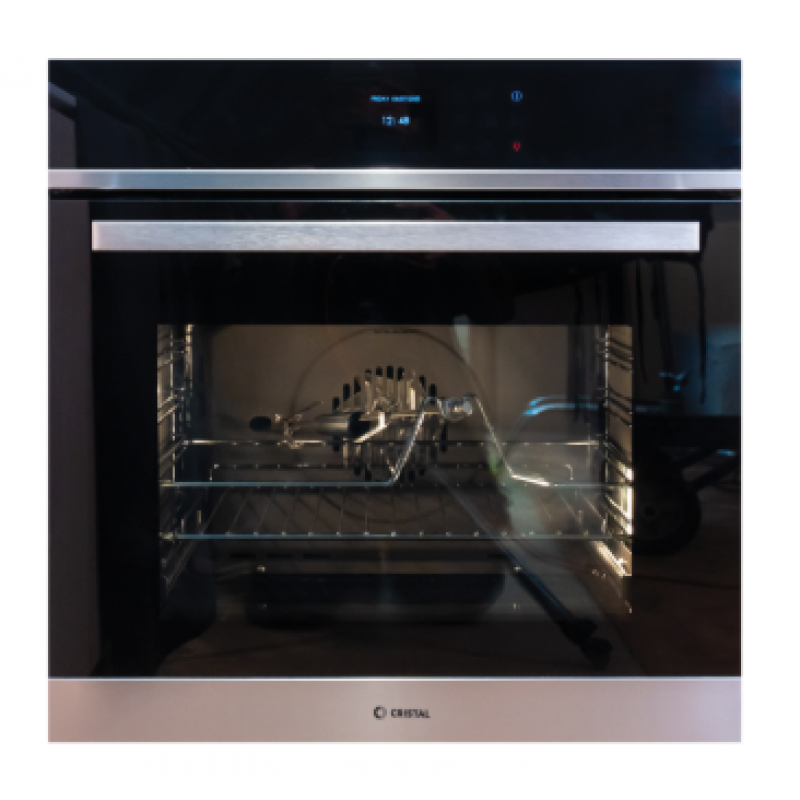 Cristal 尼斯 ESSENCE 60CRV-1 是一款高效能的 67 公升嵌入式多功能電焗爐,具備 3500W 強勁火力及 20Amp 電流規格。本產品配備感應器觸控儀表板,提供 14 種專業烹飪模式,包括專門的「披薩」及「麵包」程式,並擁有 Boost 快速預熱功能以縮短等待時間。機內採用焦灰色無鎳搪瓷內膽,結合側壁自清潔面板與三層低溫玻璃門設計,確保烹飪過程安全、耐用且清潔簡便,是現代廚房的理想選擇。