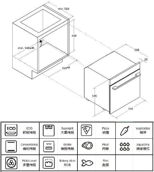 • 開孔尺寸 (高x闊x深):590 x 560 x 560 毫米