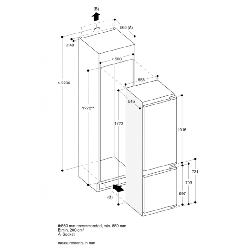 - 開孔尺寸:高 1775 mm X 闊 560 mm X 深 550 mm