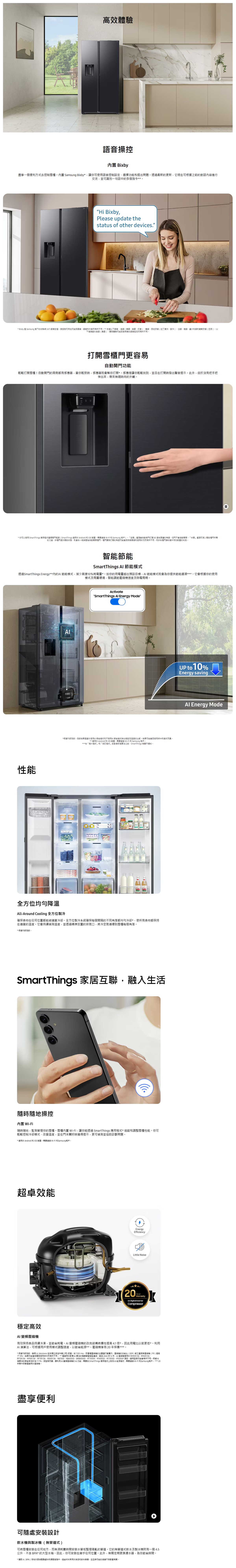 - 高效智能體驗:內置Bixby語音操控及SmartThings AI節能模式,實現智能化管理及能源效益。