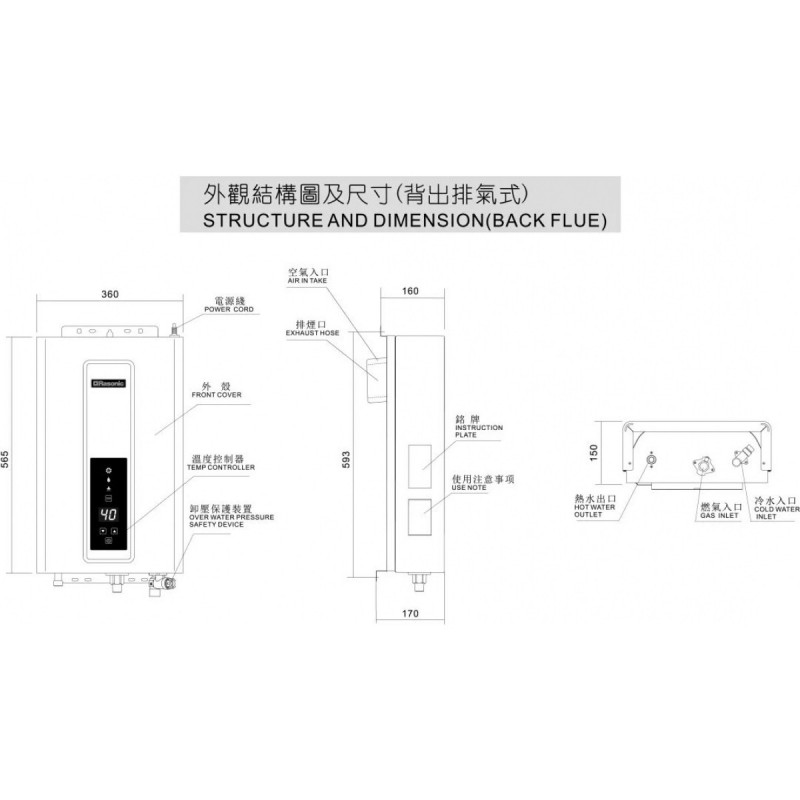 - 排煙方式: 背出排氣式 (Rear Flue Type)