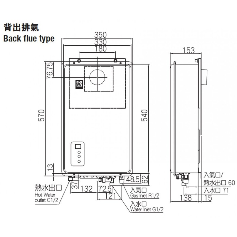 SAKURA 櫻花 HD100RF-T(白色/背排) 10公升/分鐘 煤氣恆溫熱水爐