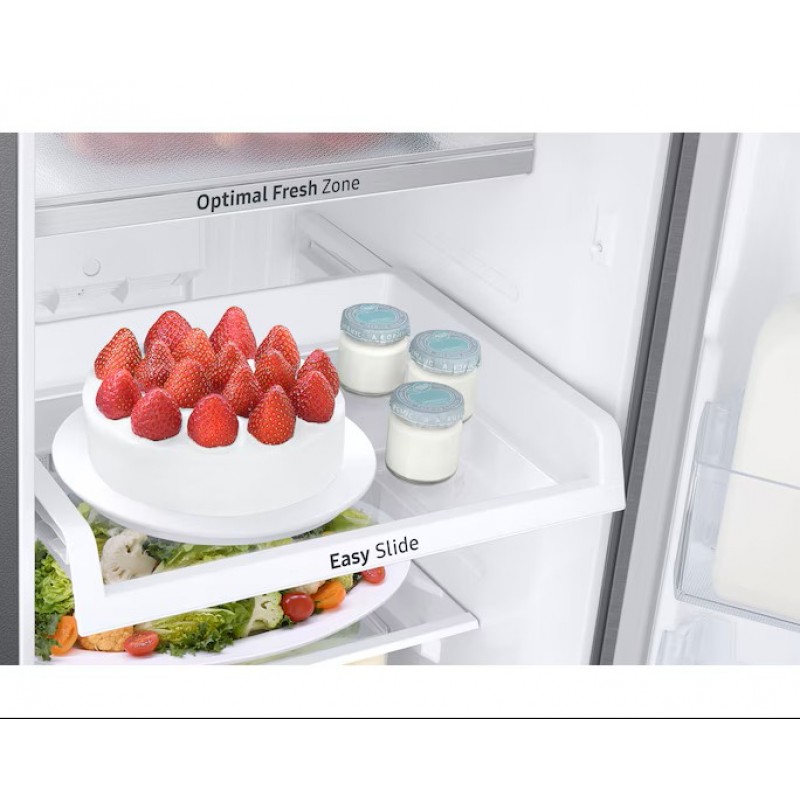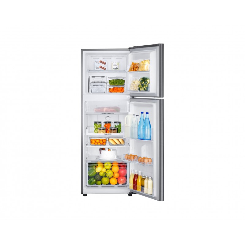 SAMSUNG 三星 RT22M4032S8/SH 234公升 智能變頻上層冷藏式雙門雪櫃,是一款專為現代家庭設計的高效節能家電。此型號採用上層冷凍設計,總淨容量達234公升,其中冷藏室淨容量為181公升,冷凍室淨容量為53公升,能有效滿足日常食材儲存需求。產品尺寸為555毫米(闊)x 1545毫米(高)x 637毫米(深)。搭載先進的智能變頻壓縮機,可根據實際運作需求自動調節轉速,確保提供節能省電、寧靜運作的雙重優勢,同時為食物帶來持久的保鮮效果。
