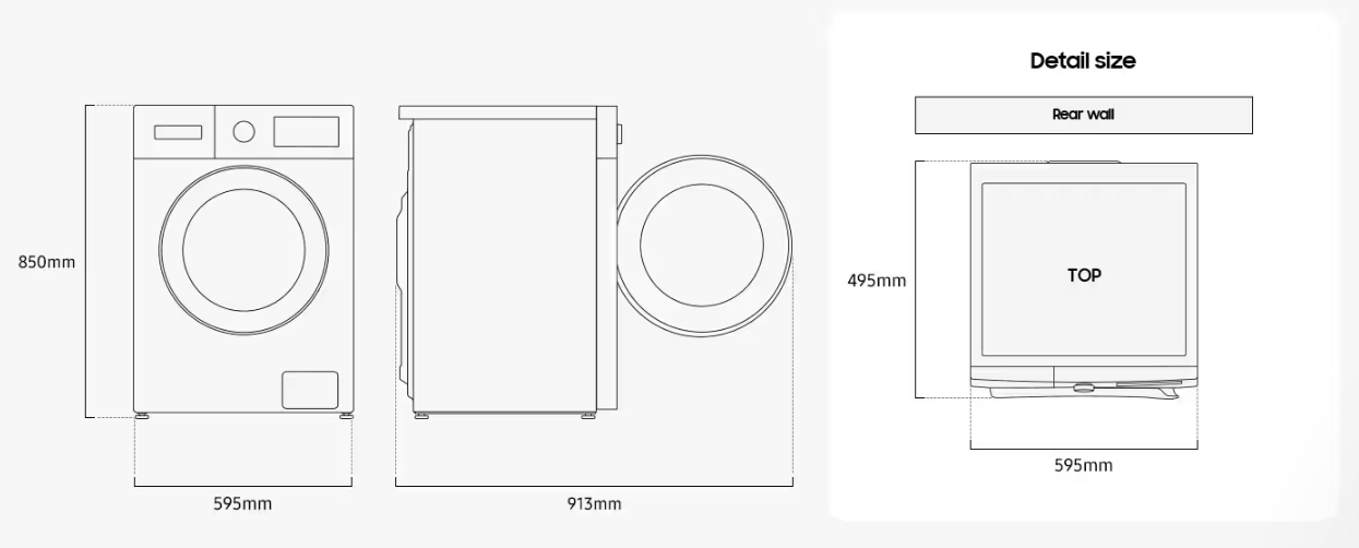 - 淨機身尺寸 (闊x高x深):595 x 850 x 455 毫米