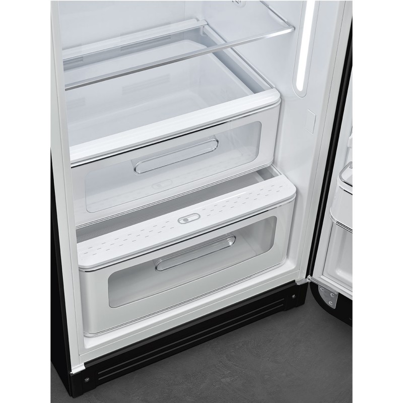 - 經典復古設計:SMEG FAB28RBL5UK 承襲品牌經典的50年代美學,流線型外觀與圓潤邊角設計,搭配亮面黑色飾面,彰顯獨特品味與懷舊魅力。