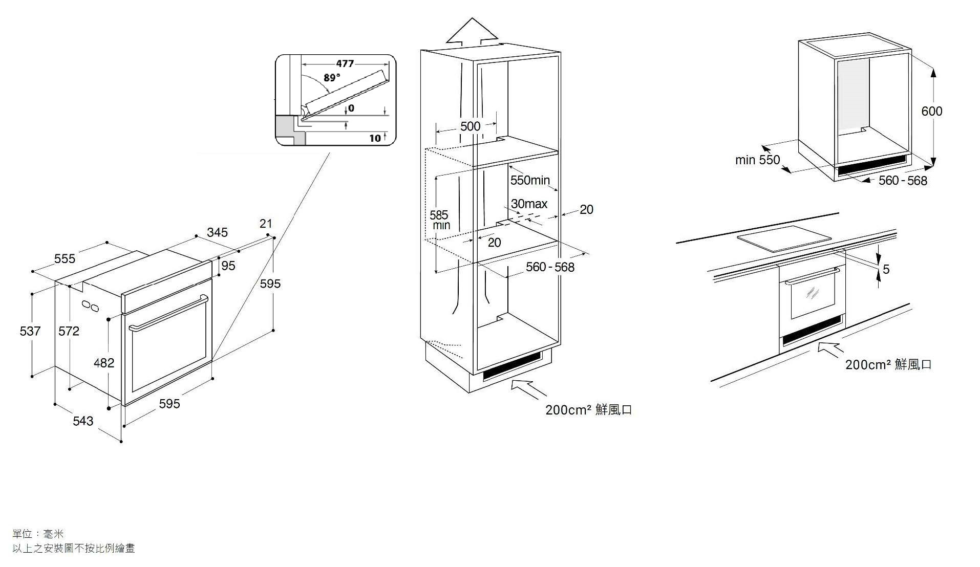 • 開孔尺寸(毫米): 闊 560-568 x 高 585 x 深 550