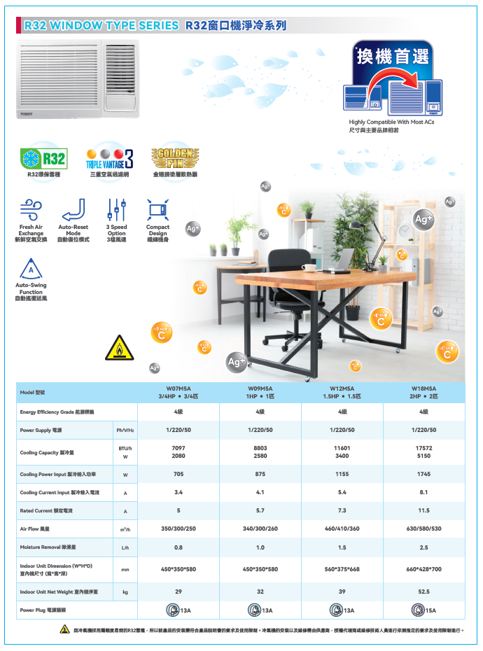 - 4-Grade Energy Label: Complies with Hong Kong's energy efficiency standards, effectively reducing electricity costs and providing an eco-friendly and economical cooling solution.