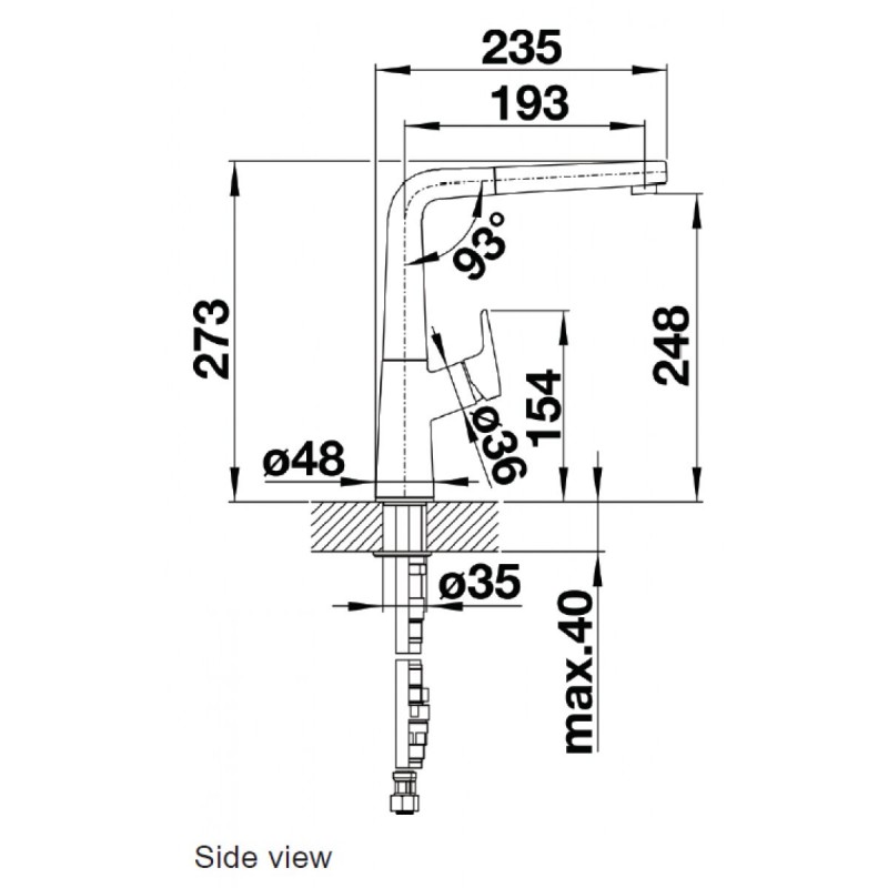 - Required tap hole: Ø 35 mm