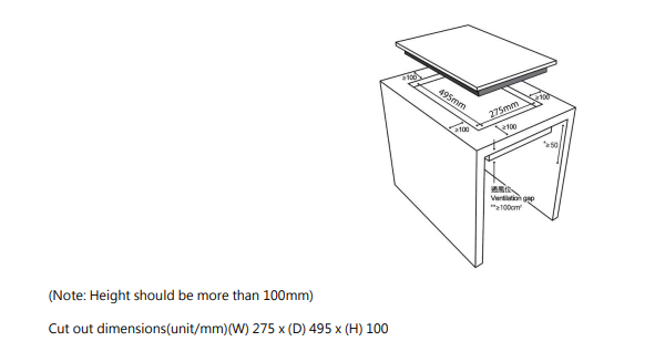 • Cut-out Dimensions (W x D): 275 x 495 mm