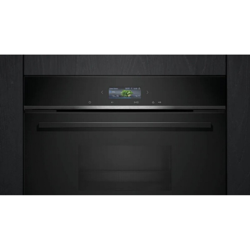 Discover the Siemens CD714GXB1W 60cm iQ700 Built-in Steam Oven, bringing smart and healthy cooking to your kitchen. This 38-litre black steam oven features an intuitive 3.7-inch TFT touch display and Home Connect smart functionality, giving you effortless control over every culinary detail.
