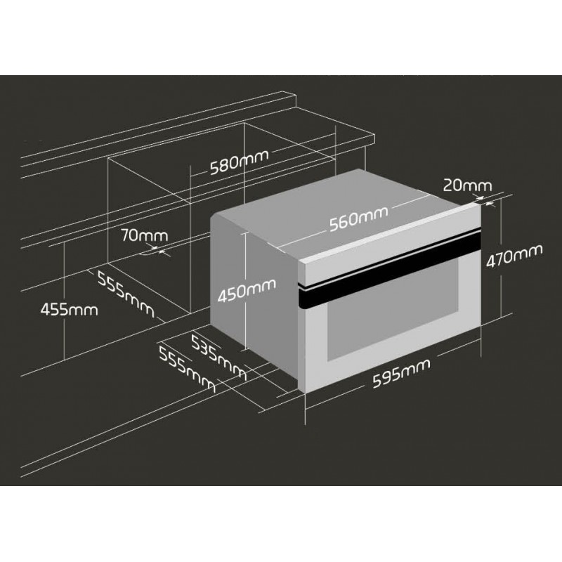 - Production Dimensions (W x H x D): 595mm x 470mm x 555mm