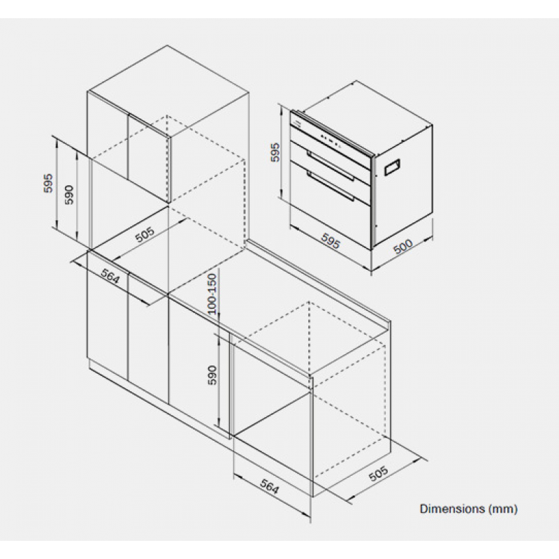 - Built-in Installation Dimensions (HxWxD): ≥590 x ≥564 x ≥505 mm