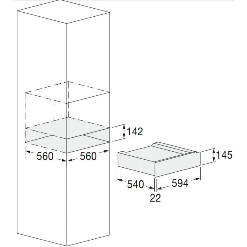 - Cut-out dimensions: W 560 x H 142 x D 560 mm