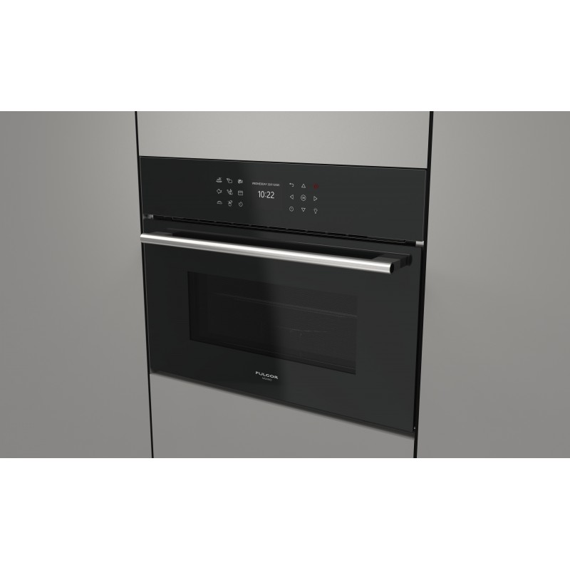 The FULGOR MILANO FCMO 4510 TEM X BK is a 45cm tall built-in combined microwave oven featuring a 34L capacity and a sleek black glass finish. This versatile appliance combines the speed of a microwave with the benefits of a traditional ventilated oven, offering 10 combined functions and an AirFry mode.