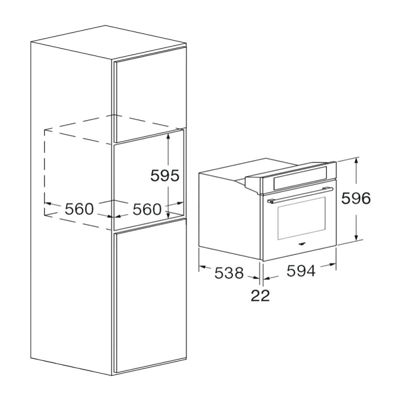 - Built-in Cut-out Dimensions: H 595 mm X W 560 mm X D 560 mm