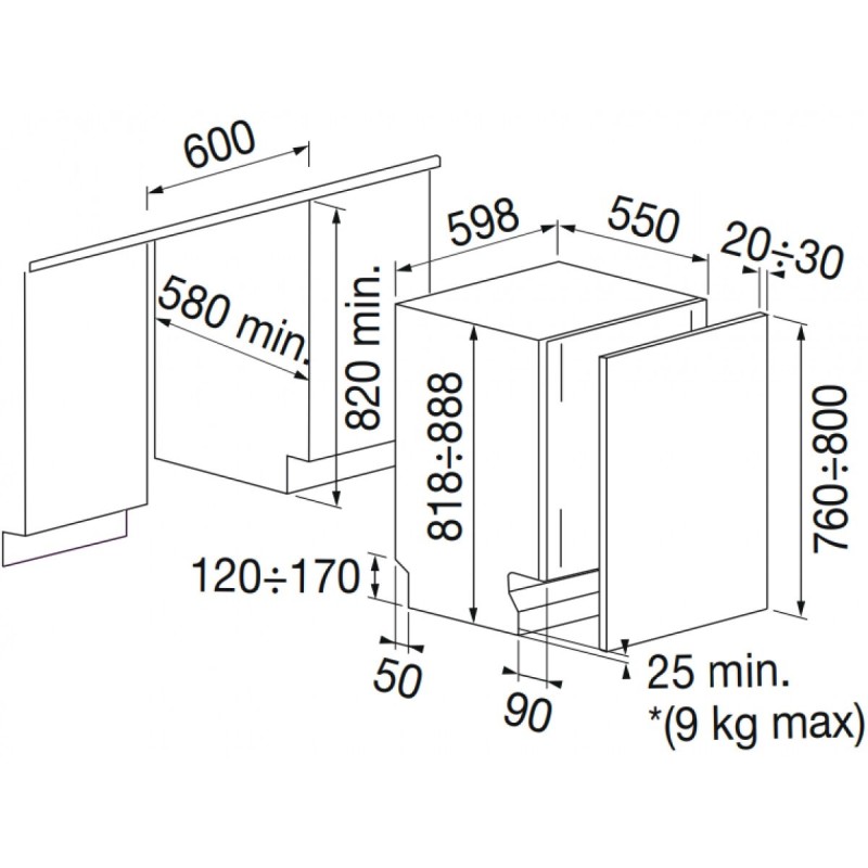 - Dimensions: 598 W x 555 D x 818-888 H (mm).