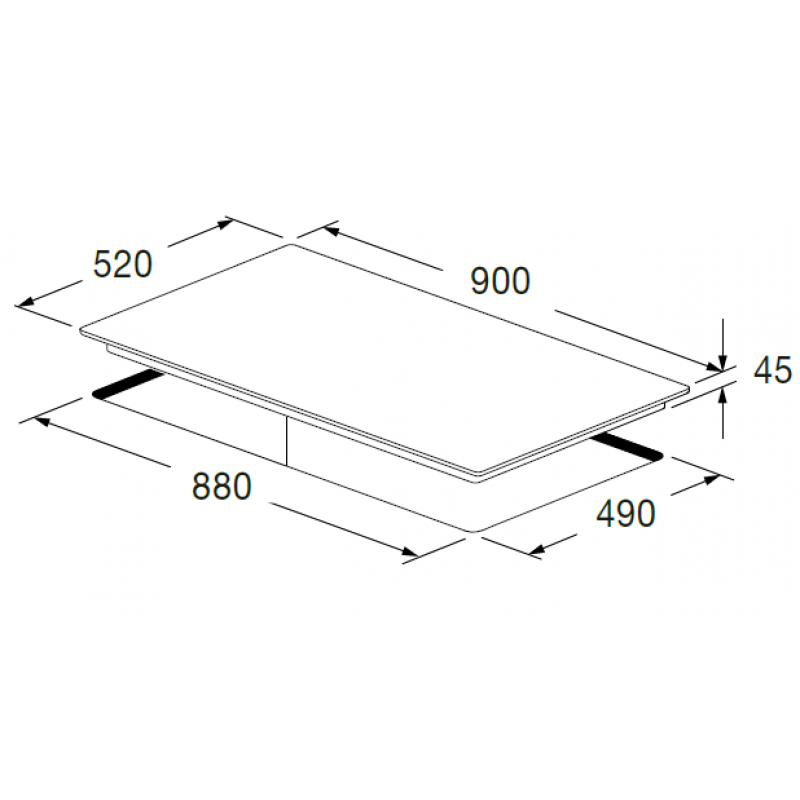 - Cut-out Dimensions (W x D): 880 x 490 mm
