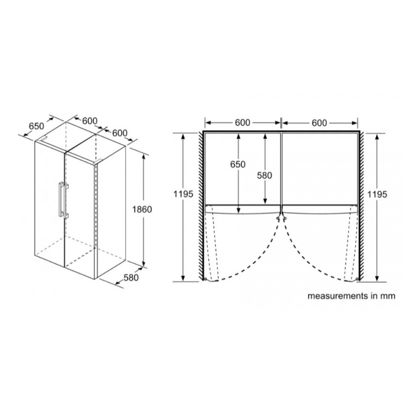 - Dimensions (H x W x D): 1860 mm x 600 mm x 650 mm