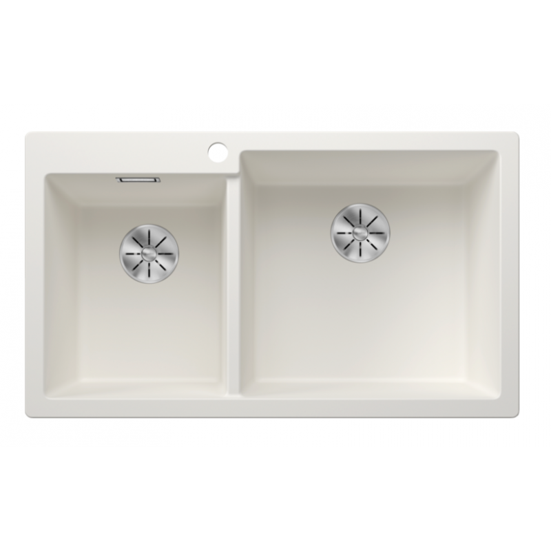 The BLANCO PLEON 9 (523061) is a premium double bowl granite composite sink in elegant white, meticulously crafted from BLANCO's patented SILGRANIT™ PuraDur™ material. Engineered for exceptional durability, hygiene, and aesthetic appeal, this German-made sink features generously deep bowls (220/220 mm) and a practical cut-out size of 840 x 480 x R15, making it an ideal choice for modern kitchens seeking both superior functionality and timeless design.