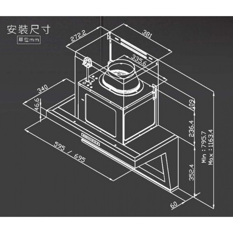 | Distance between most cookerhood and cooker at least 700mm / 28inch, (or According to the agent installation guide ) | |||