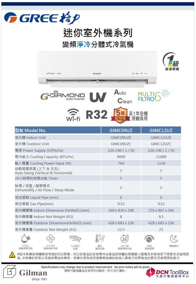 - Outdoor Unit Model: GIMC09UZC