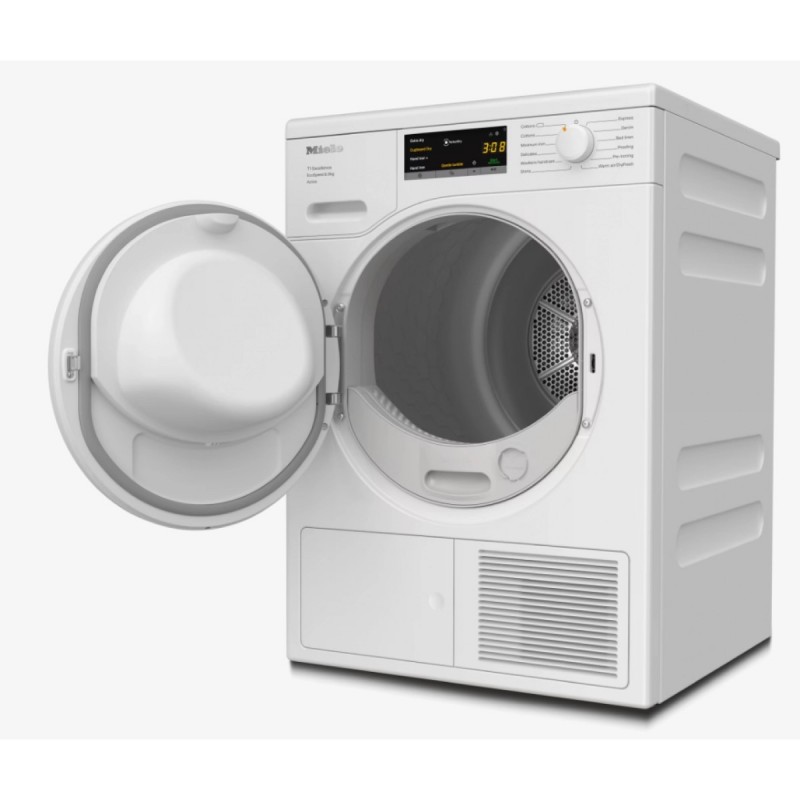 The Miele TEA525WP is an 8.0kg heat pump tumble dryer, meticulously engineered to provide exceptional fabric care and superior energy efficiency. This appliance integrates advanced heat pump technology for gentle drying at lower temperatures, ensuring optimal protection for your garments while significantly reducing energy consumption. Designed for durability, it boasts a lifespan tested for 20 years, operating reliably on a 220-240V power supply.