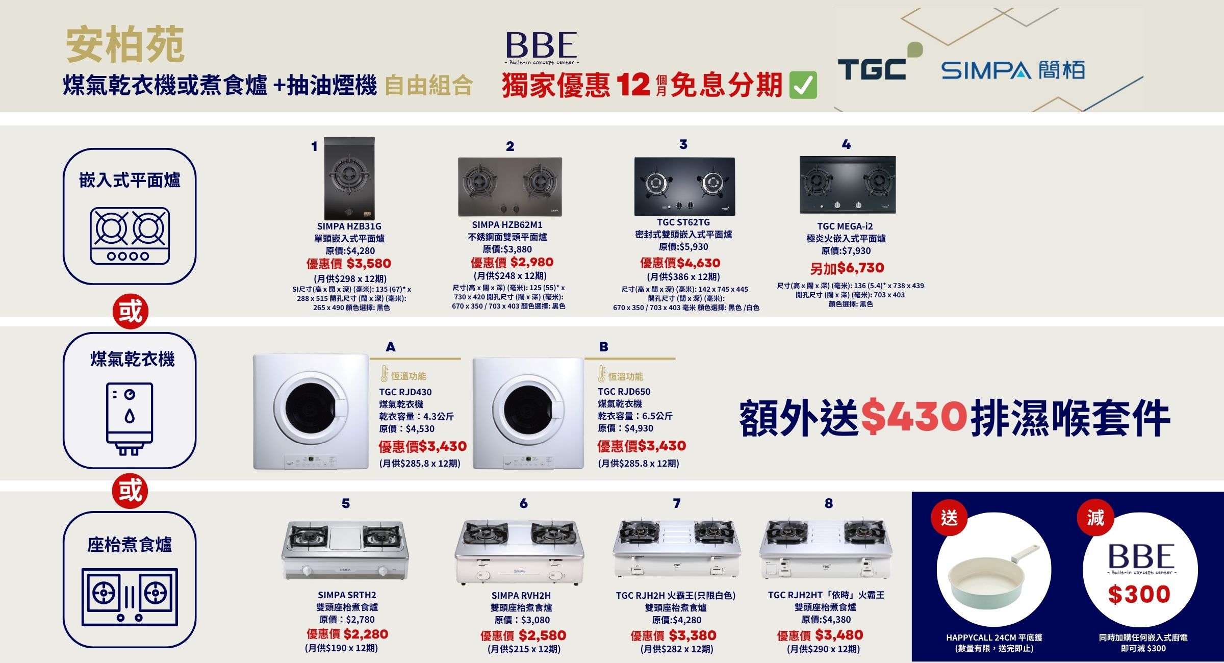 獨家電器爐具優惠!安柏苑獨家優惠,12個月免息分期,月供低至$476!